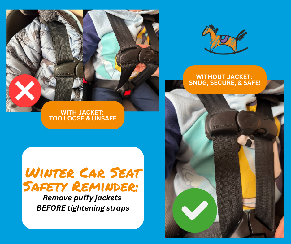 - Take off puffy coats before buckling your child in.